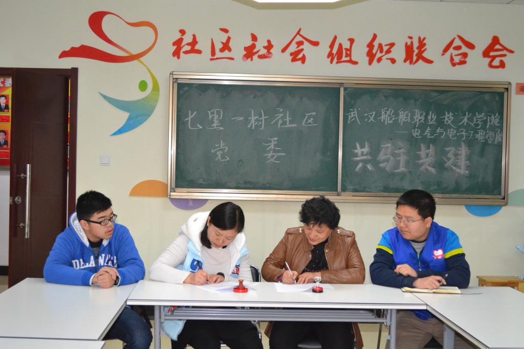 本网讯 为更好打造电气学院志愿者服务平台,弘扬志愿者精神,充分发挥“资源共享、优势互补、文明共建、共同发展”作用。1月2日,电气学院与中共武汉市汉阳区委琴断口街工作委员会达成共识,成功签订了琴断口街基层党建“共驻共建”协议书,建立了继聋儿康复中心校外志愿者服务基地之后的又一校外志愿者服务基地平台。此次协议签订人为电气学院分团委书记余帅老师和琴断口七里一村社区委员会孙书记。