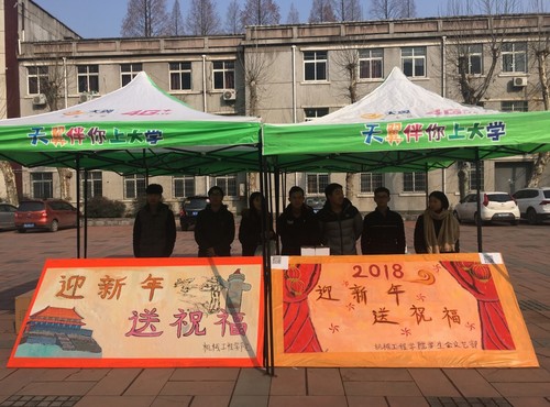 本网讯 1月8日早上10点,在新年到来之际,为了每个人能够更好的表达自己的感受,让新的一年能够拥有更加朝气蓬勃的精神面貌。由机械工程学院主办、机械工程学院学生会青招部承办、机械工程学院记者团协办的“迎新年、送祝福”活动在博海广场顺利开展。